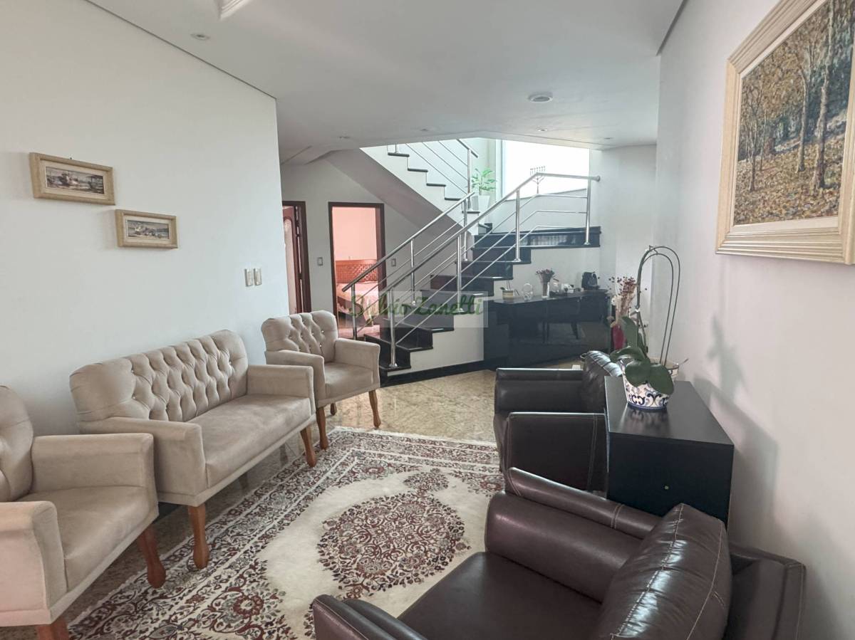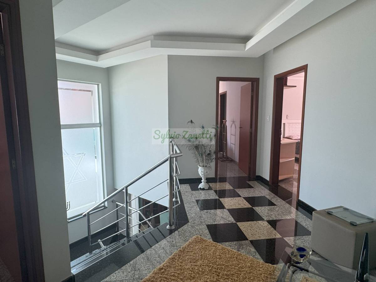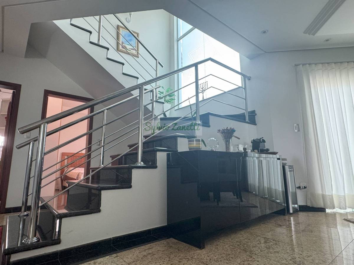 São 3 suÃtes com closet no andar superior, 1 suÃte no andar térreo, sala de visitas e jantar integradas, sala de home cinema, escritório, cozinha, despensa generosa, piscina, área gourmet, lavanderia grande, depósito e garagem grande.