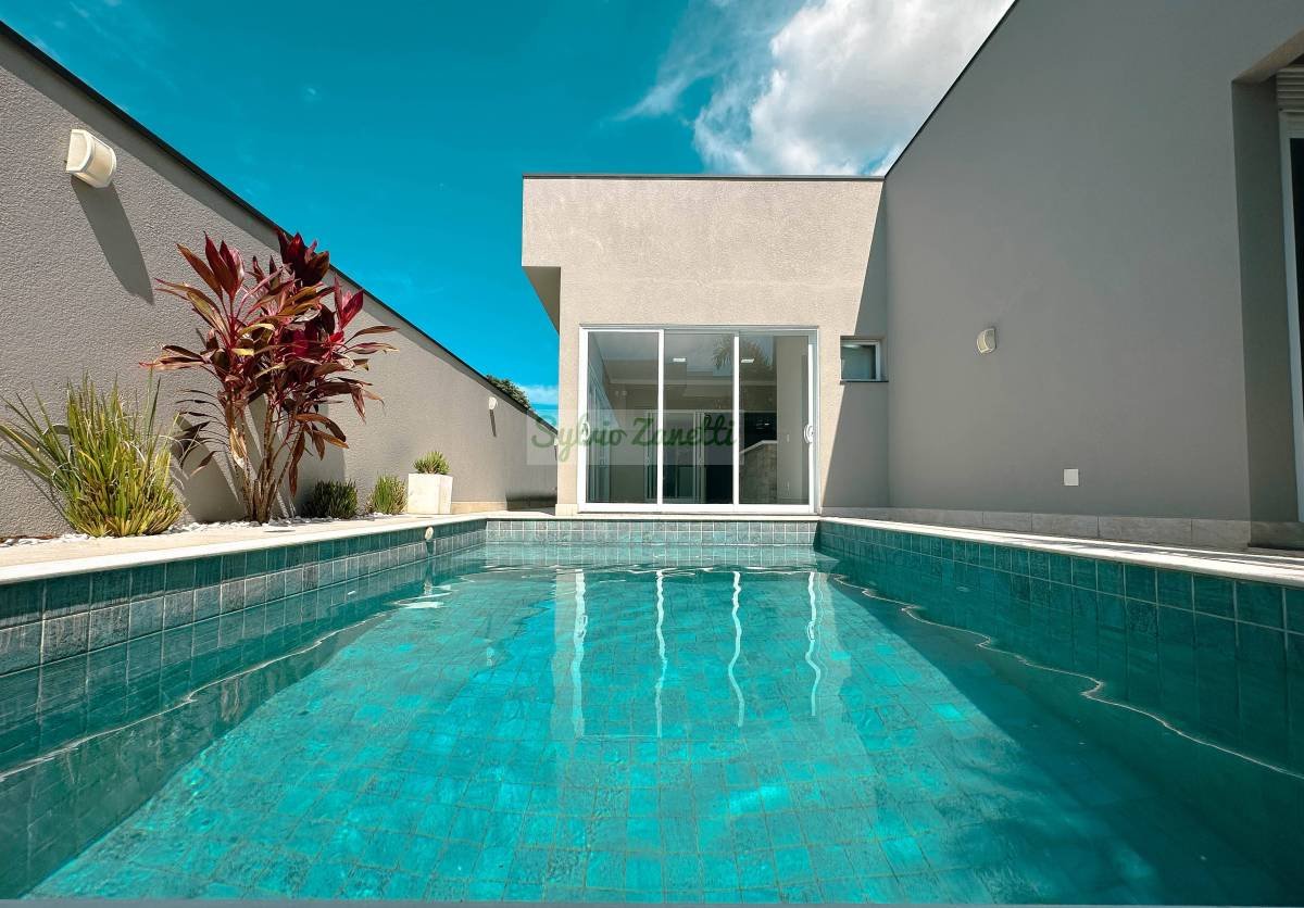 Linda residência térrea com piscina no Condomínio Villa Bella Siena, com 3 suítes, 213,69m² constr. 364m² terr.