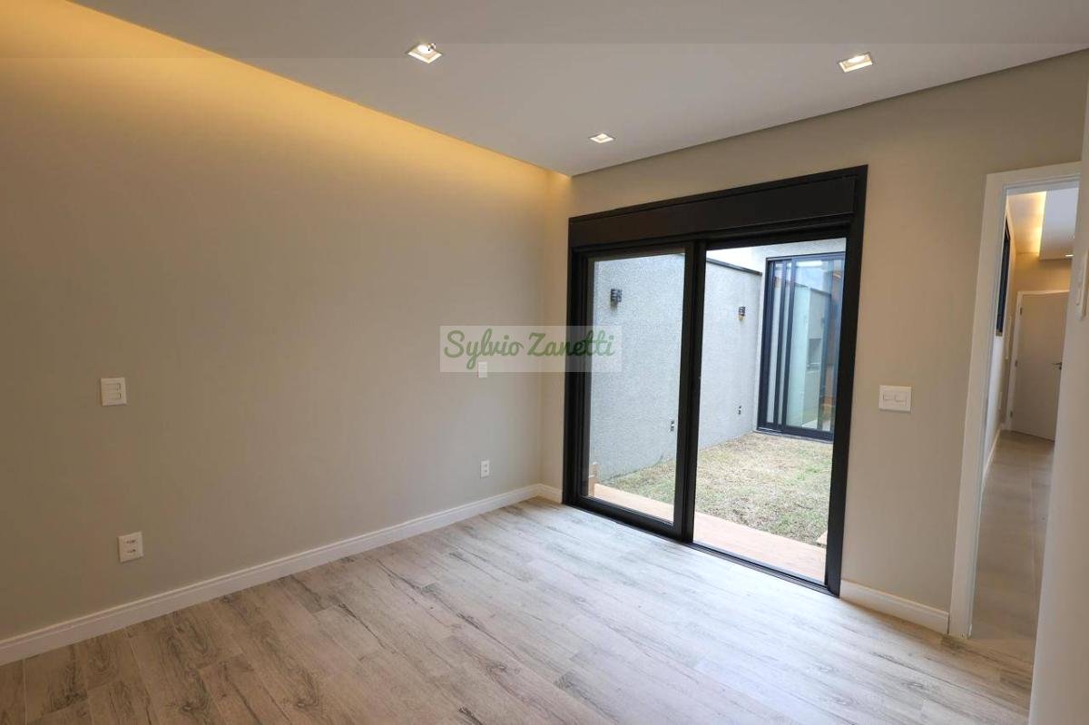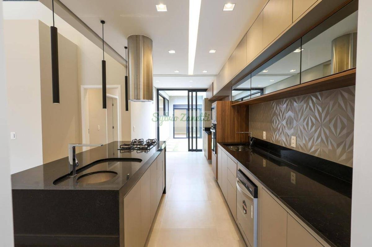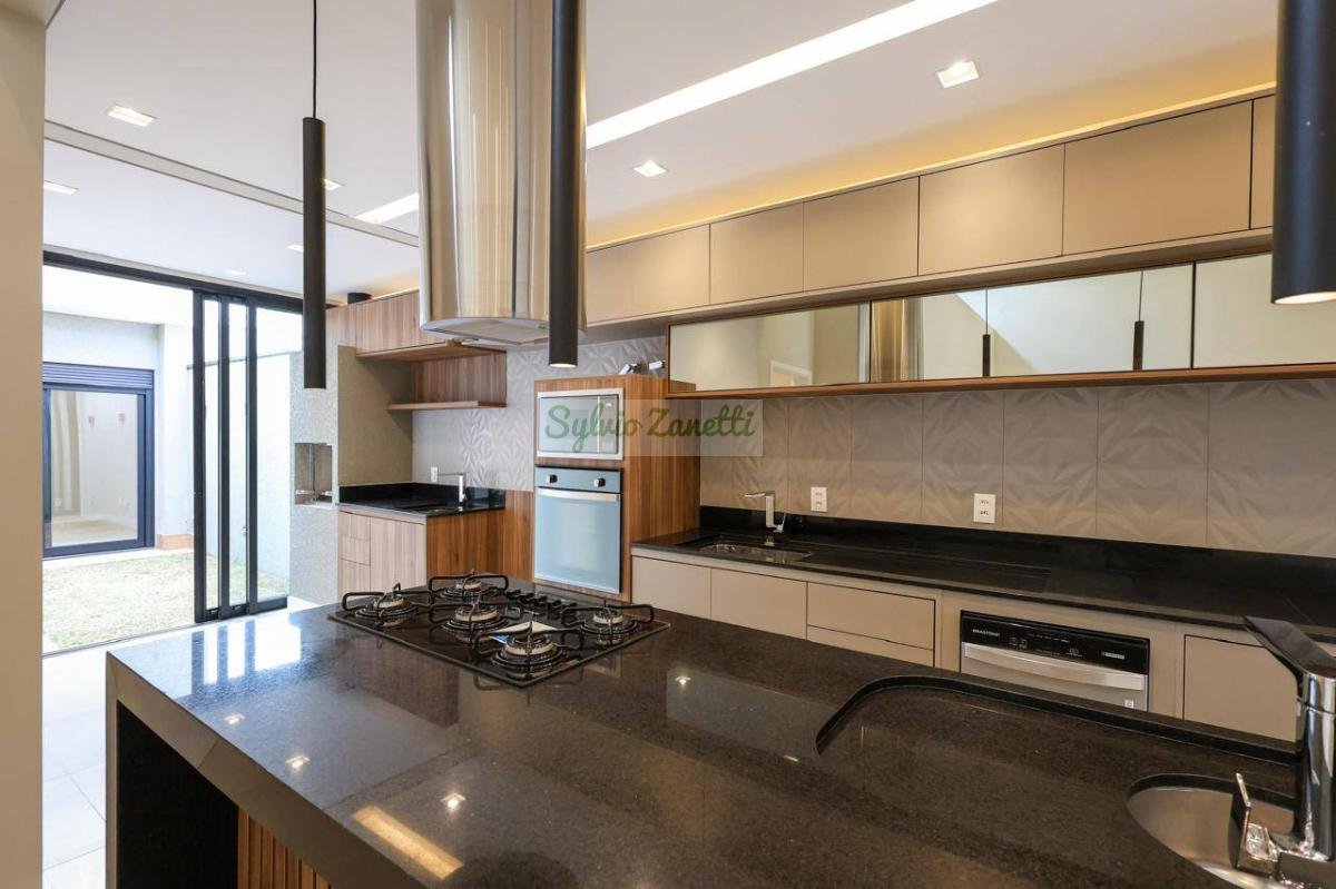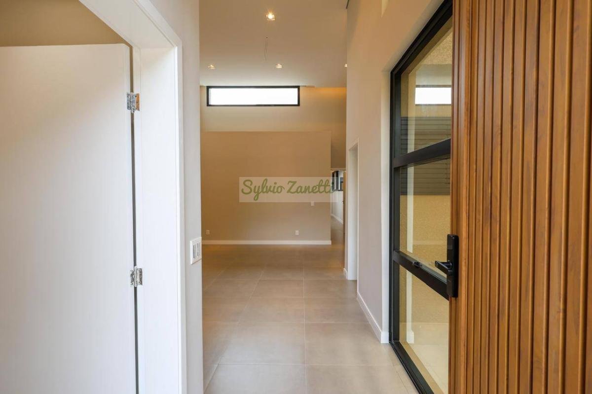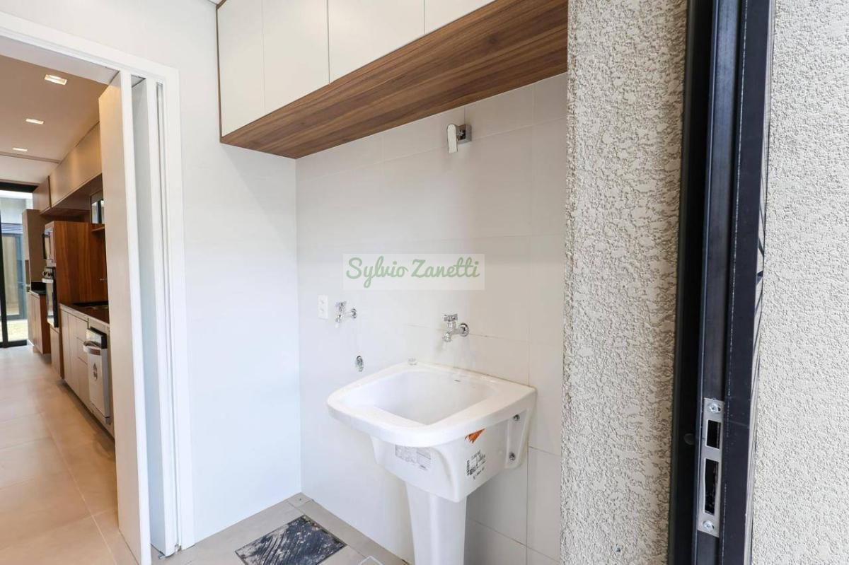 Garagem; área de serviço; escritório (reversível para dormitório); lavabo; salas de estar e jantar com pé direito duplo com alta sensação de amplitude; cozinha Americana integrada com área gourmet com conceito aberto; corredor de distribuição e 3 suítes, sendo 1 suíte master com closet e banheiro com duas cubas e dois chuveiros.