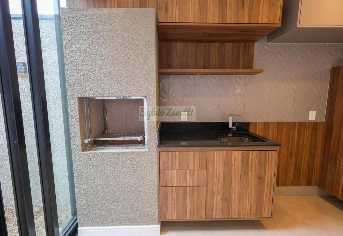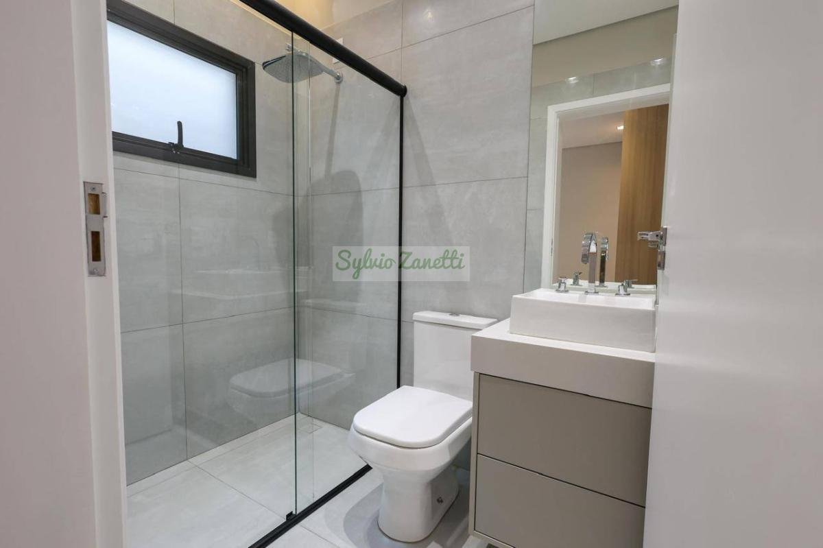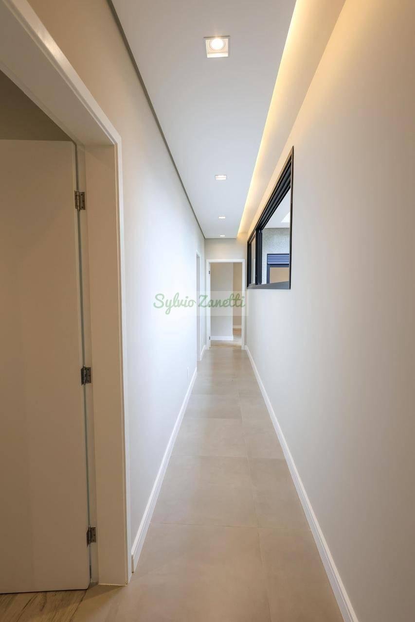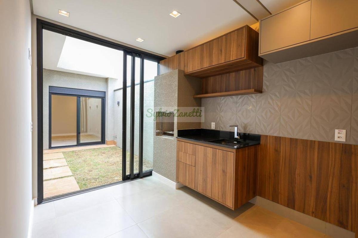 Garagem; área de serviço; escritório (reversível para dormitório); lavabo; salas de estar e jantar com pé direito duplo com alta sensação de amplitude; cozinha Americana integrada com área gourmet com conceito aberto; corredor de distribuição e 3 suítes, sendo 1 suíte master com closet e banheiro com duas cubas e dois chuveiros.