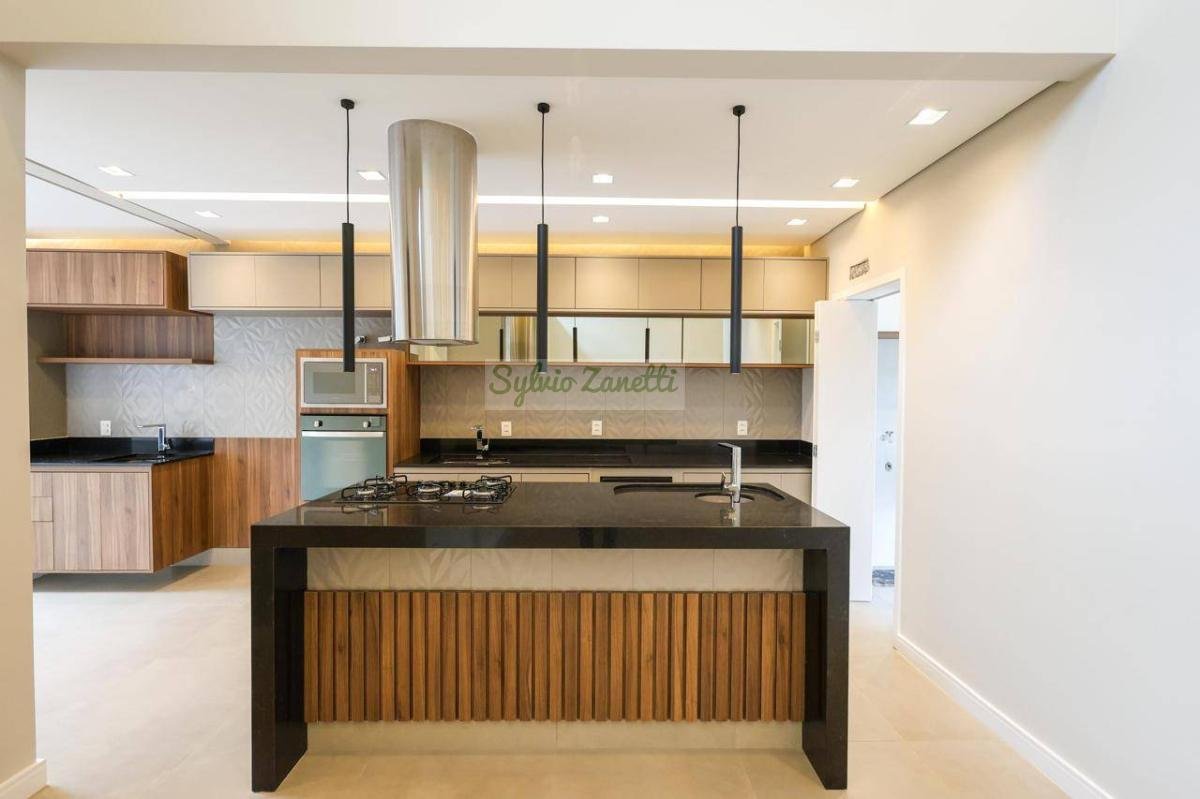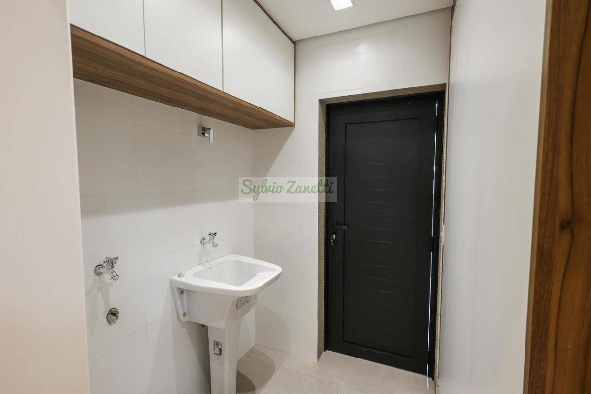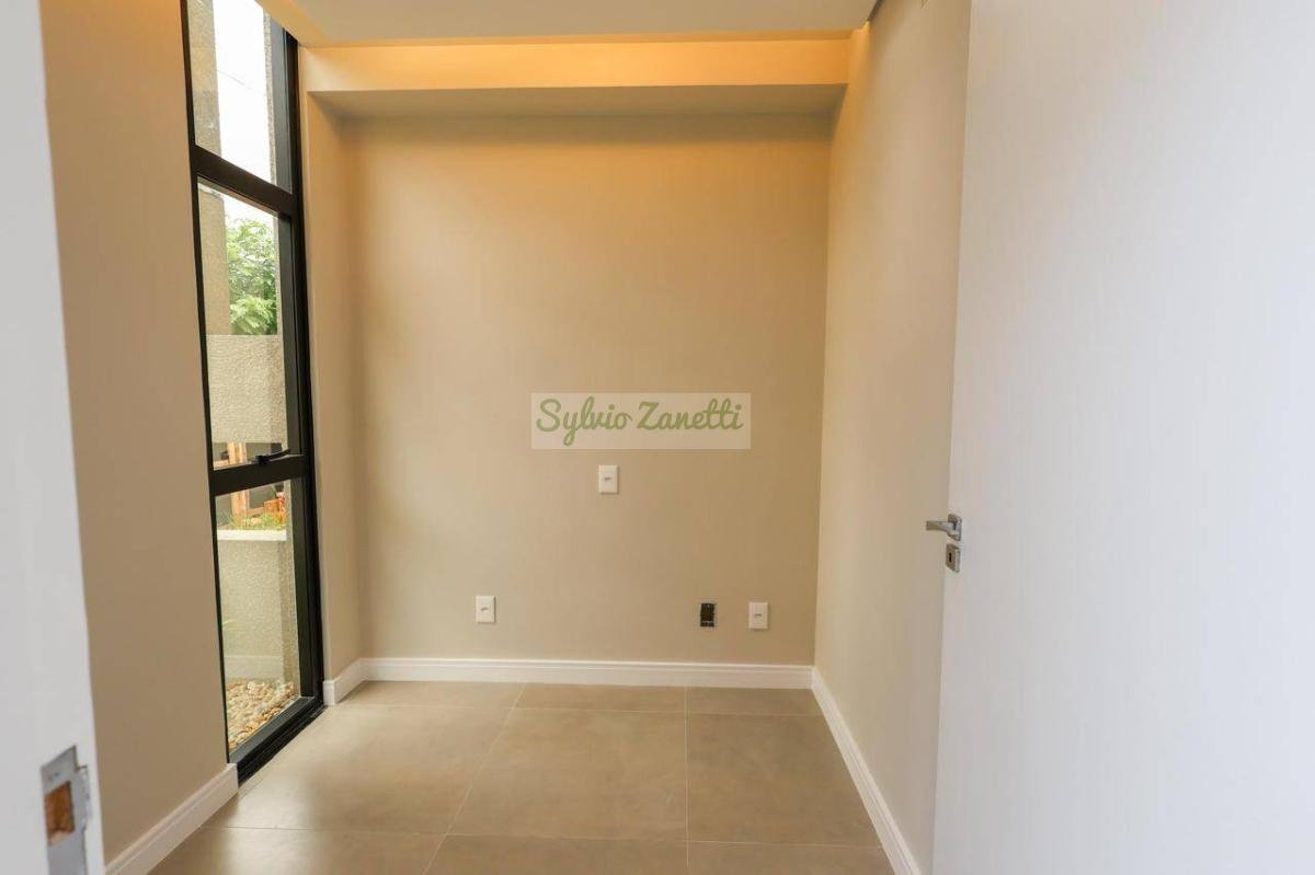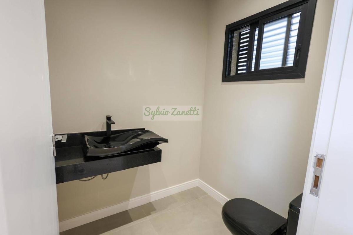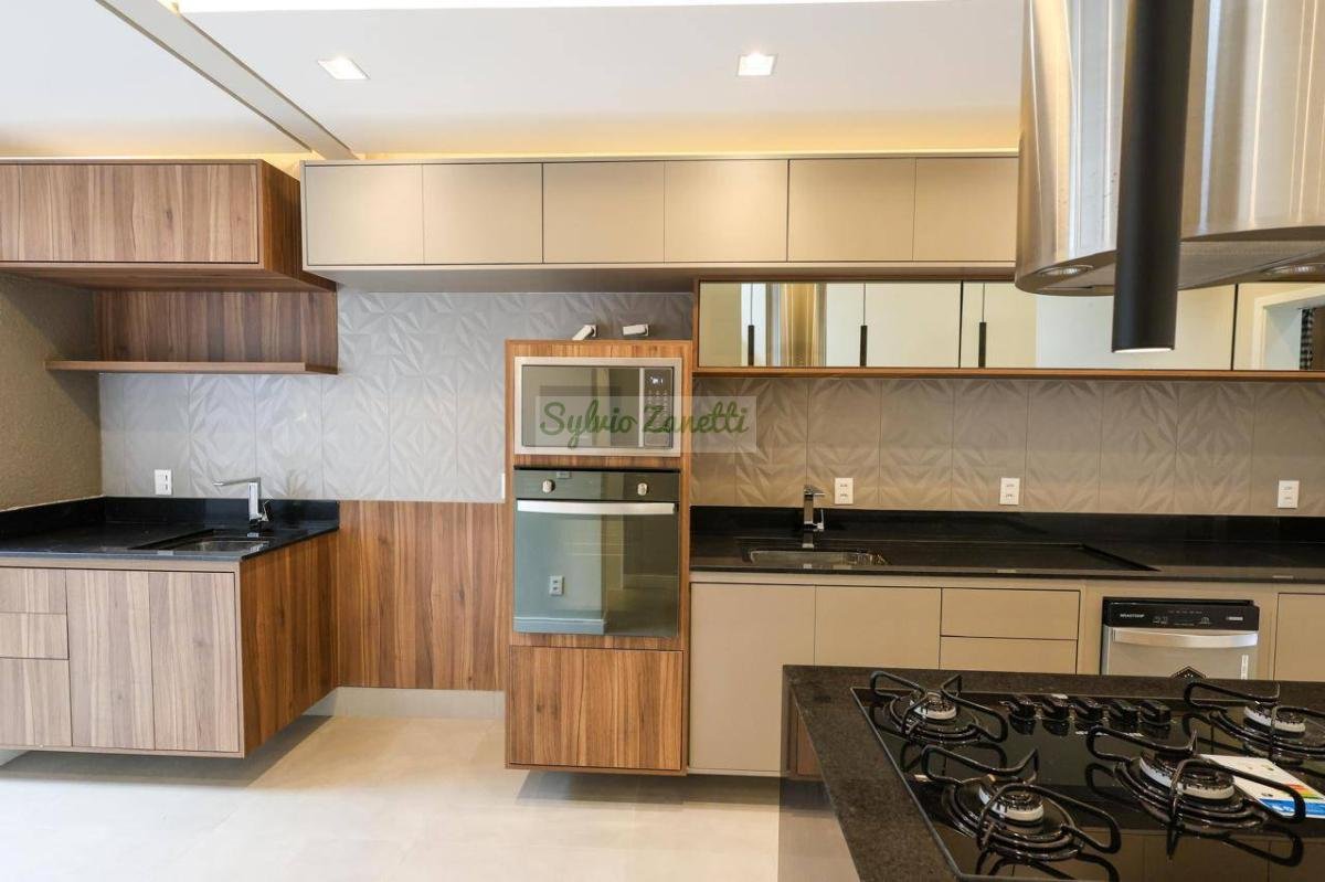 Garagem; área de serviço; escritório (reversível para dormitório); lavabo; salas de estar e jantar com pé direito duplo com alta sensação de amplitude; cozinha Americana integrada com área gourmet com conceito aberto; corredor de distribuição e 3 suítes, sendo 1 suíte master com closet e banheiro com duas cubas e dois chuveiros.